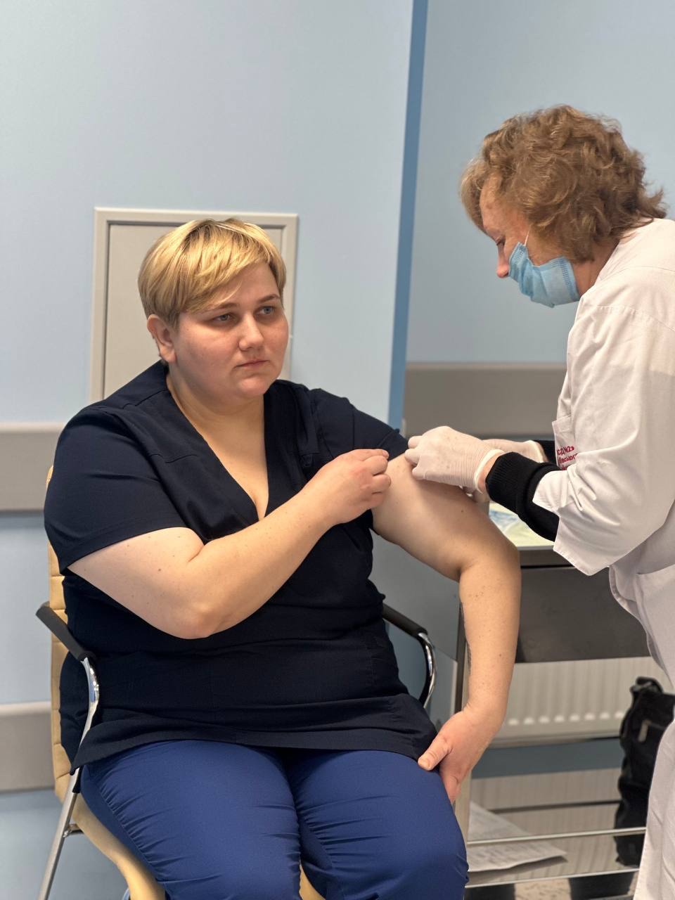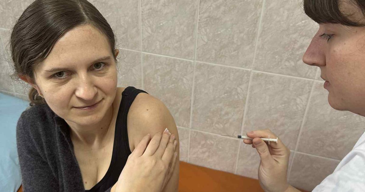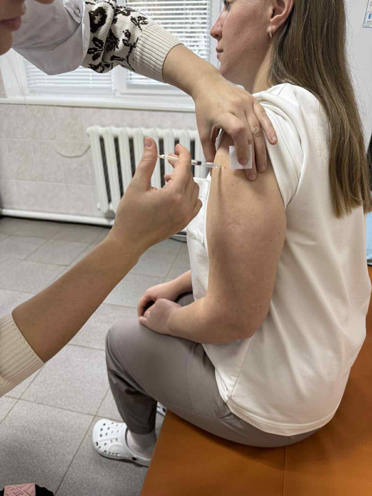 Дануся Брезицька щеплюється проти грипу в Острозькому ЦПМД