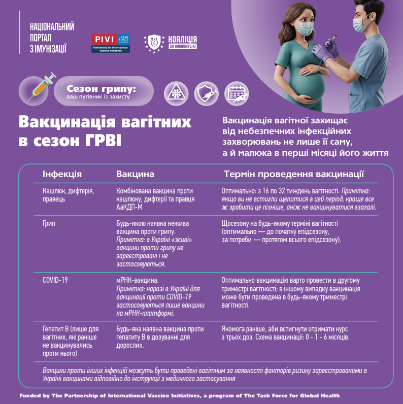 Інфографіку “Вакцинація вагітних в сезон ГРВІ” можна скачати тут.