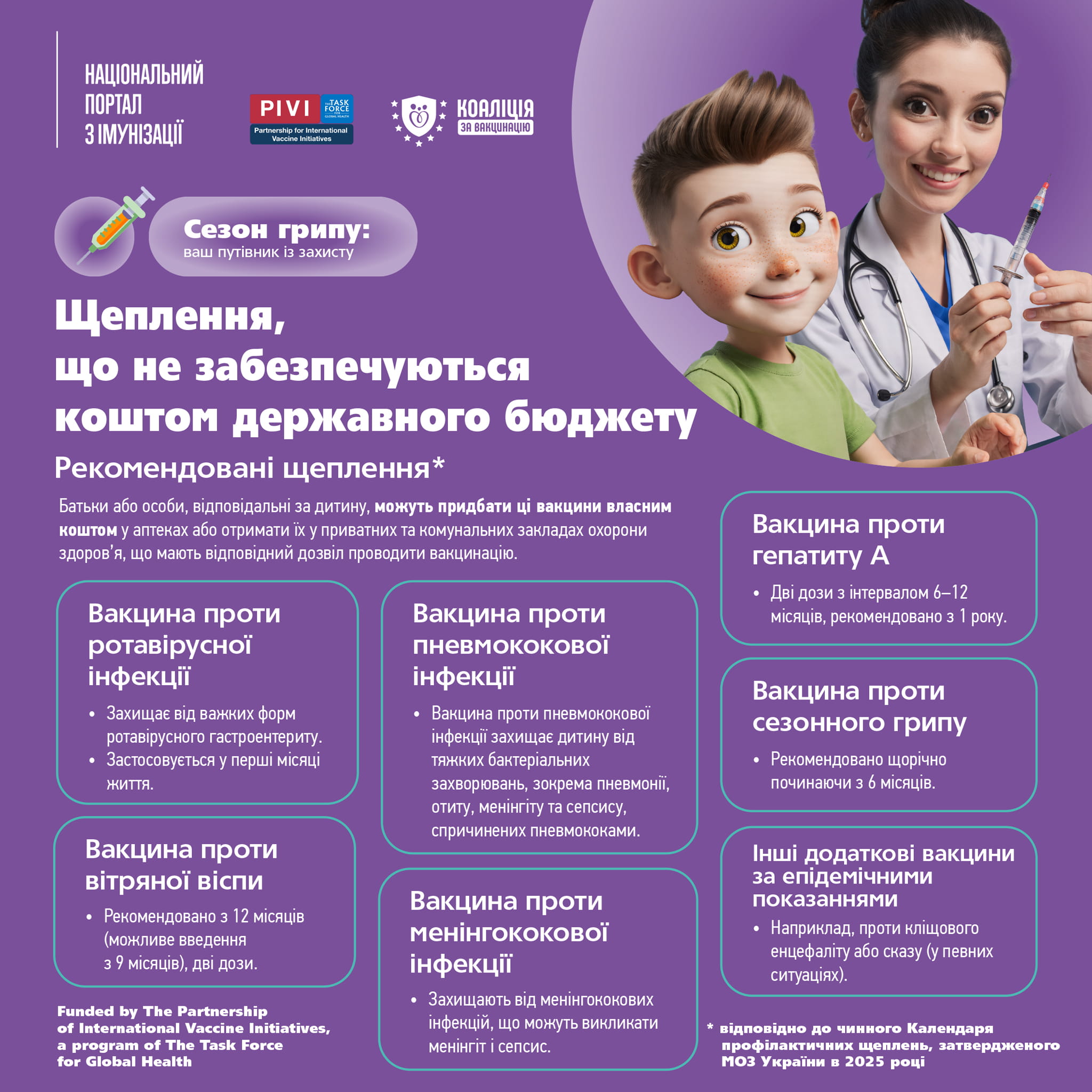 - щеплення, які не забезпечуються коштом Державного бюджету України.